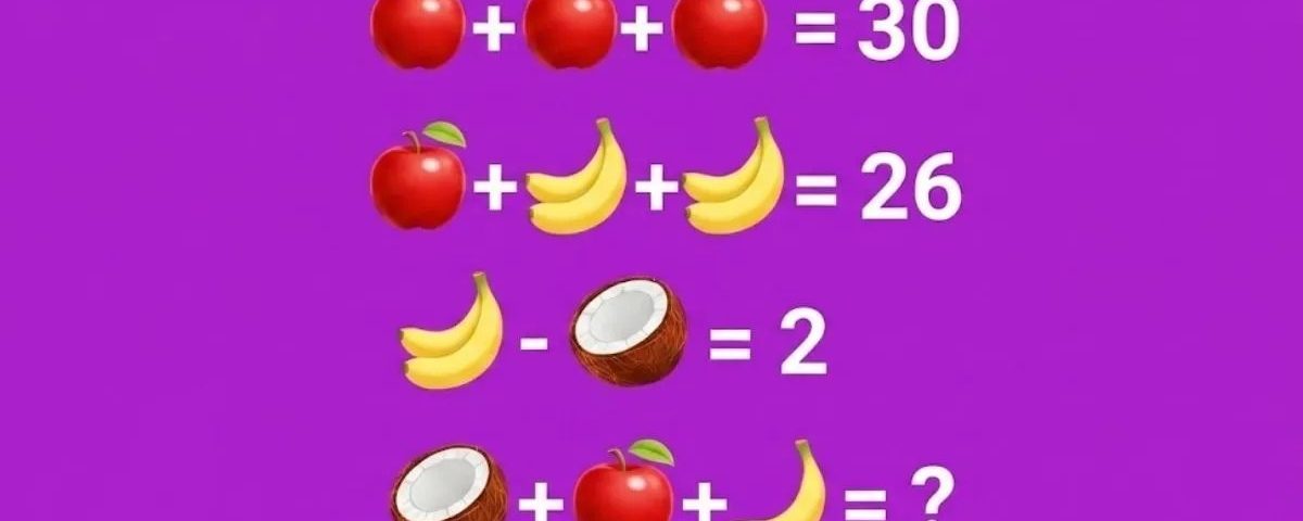 În puzzle sunt prezentate mai multe ecuații în care apar trei tipuri de fructe: mere, banane și nuci de cocos. Fiecare fruct are o anumită valoare numerică, iar scopul este să descoperi aceste valori pentru a calcula rezultatul final, scrie Jagran Josh.