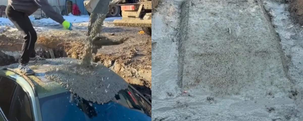 În imaginile devenite virale, se vedem o groapă adâncă săpată unde este apoi pusă mașina. După ce bolidul a fost coborât în groapă, a fost turnat beton peste el, iar în final a fost aruncată și cheia acolo.